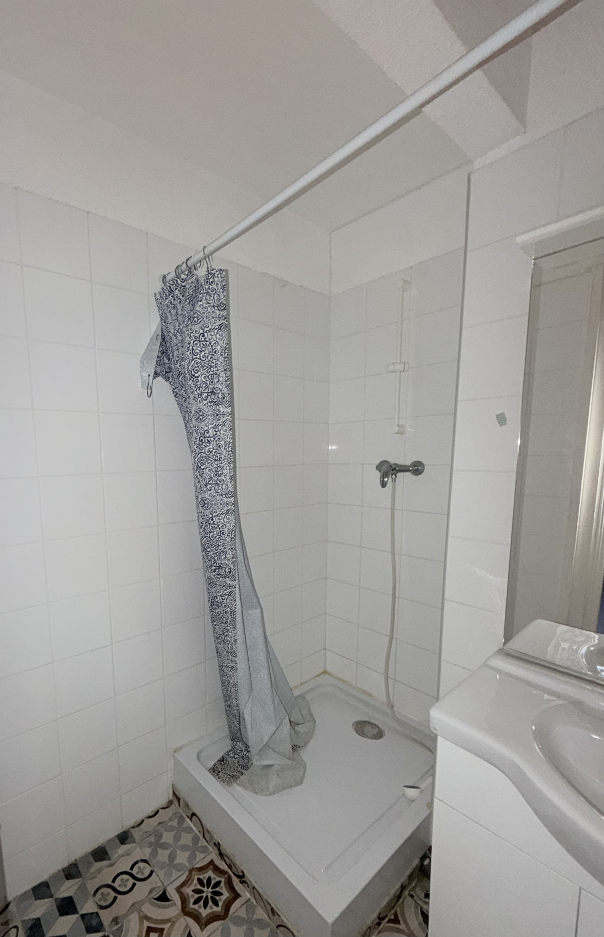 C’est un appartement T2 qui bénéficie d’une entrée avec wc, d’un salon séjour donnant sur une cuisine fermée et sur un chambre avec placards dans laquelle se trouve la salle d’eau.